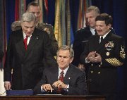 他再次警告,伊拉克拒絕履行聯(lián)合國安理會決議的后果將是戰(zhàn)爭,美國將會在危險增大之前采取先發(fā)制人的行動。