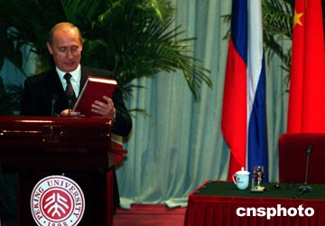 走過百年歷程的北京大學(xué)今天迎來一個具有重要意義的歷史時刻,中國國家主席江澤民和到訪的俄羅斯總統(tǒng)普京共同出現(xiàn)在北大講壇上。