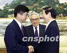 中新社北京十二月三日電 (記者 朱大強(qiáng))中國(guó)總理朱镕基今天在人民大會(huì)堂會(huì)見了美國(guó)前國(guó)務(wù)卿基辛格,美籍華人、華盛頓州州長(zhǎng)駱家輝和波音民用飛機(jī)集團(tuán)總裁兼首席執(zhí)行官穆拉利。