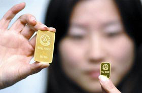 在黃金交易所的交易中,黃金只是抽象的概念,按成色、價格和當日行情成交,品牌根本沒有什么意義。世界黃金協(xié)會中國區(qū)經(jīng)理王立新昨天向記者表示,金礦企業(yè)打出黃金品牌的意義主要是看好中國的個人投資市場,即用于個人收藏和投資的金磚、金條。我國今年前三季度金飾需求145.6噸,投資產(chǎn)品需求僅為0.9噸,因此用于投資的金磚、金條市場潛力很大。一旦放開市場,準許個人投資黃金,那么有信譽保證的品牌黃金就能在市場上掘得第一桶金。中國黃金協(xié)會副秘書長許守信稱,由于中國一直不允許個人持有黃金,民間需求相當強勁,因此一旦政策松動,一年的投資黃金需求量估計能達到100噸,這對每個黃金生產(chǎn)企業(yè)都有吸引力,品牌黃金則可以搶到市場先機。