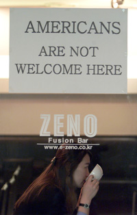 漢城餐廳的櫥窗貼出“這里不歡迎美國人”
