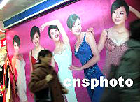 許多生產(chǎn)內(nèi)衣的商家,借北方寒冬進行反季節(jié)銷售,誘人的瘦身內(nèi)衣美女廣告格外奪目。王麗南 攝