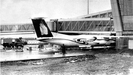 事故發(fā)生地點位于正在建設(shè)中的咸陽國際機(jī)場新候機(jī)樓。飛機(jī)受損情況十分嚴(yán)重,機(jī)頭已被人用彩條布包裹,螺旋槳變形扭曲,風(fēng)葉幾乎看不見。飛機(jī)左翼斷了前半截,右翼也傷痕累累。在飛機(jī)機(jī)身上,一個大大的“長”字清晰可辨,這表明飛機(jī)的主人可能是“長安航空公司”。受損飛機(jī)是一架小型客機(jī),憑經(jīng)驗判斷其容量大約在100人,后經(jīng)詢問,這是“沖八飛機(jī)”。另外,機(jī)場工地與機(jī)場跑道之間的隔離欄已被撞斷。
