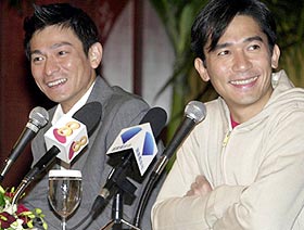 據(jù)聯(lián)合晚報(bào)報(bào)道,兩人前天到新加坡為《無(wú)間道》作宣傳,在記者會(huì)上,互相自己給自己戴高帽,還拼命給對(duì)方戴高帽,惹出不少笑話。