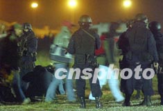 香港警方于十二月十一日凌晨在赤(魚加立)角機場停機坪進行反恐演習,以測試警隊處理恐怖事件的能力及反應。中新社傳真 錢興強 攝
