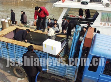 昨天記者在白鱘出水現(xiàn)場曾巧遇中華鱘東方養(yǎng)殖研究基地主任劉忠,從劉主任的口中獲知,該基地是投資數(shù)千萬元,專為野生養(yǎng)殖中華鱘而修建的,其軟硬件設(shè)施均為一流。將白鱘運往中華鱘東方養(yǎng)殖研究基地進(jìn)行護(hù)養(yǎng)是劉忠專程趕到南京的目的,F(xiàn)在,如愿已償。