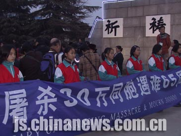 據(jù)悉,這是江蘇省和南京市有關部門共同舉辦的以“悼念遇難同胞,銘記歷史教訓;維護世界和平,促進共同發(fā)展”為主題的“悼念南京大屠殺30萬同胞遇難65周年暨南京國際和平日”系列活動之一,當晚舉行的千人“燭光祭”將把這一系列活動推向高潮。