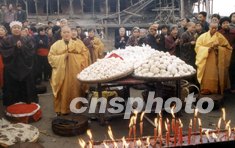 重慶市奉節(jié)縣新城的僧人,今冬為新建的佛教清凈庵大雄寶殿舉行“上梁”儀式,祈求國泰民安。為了滿足百姓對宗教信仰的需要,在許多老寺廟將隨三峽工程進(jìn)展浸入水中的同時(shí),新的寺廟正陸續(xù)興建。作者:李中全