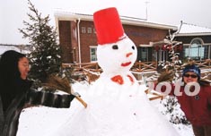上午11點(diǎn),陶然亭公園潔白的湖面成了公園人氣最旺的地方。人們在冰面上滾雪球、堆雪人、打雪仗、滑冰車。走在公園的小路上,你會(huì)跟許多形狀滑稽的雪人不期而遇,它們相貌各異,有的頭插一串鮮花,有的脖子系著五彩繽紛的布條,有的頭頂一片綠色柏樹枝。一群中學(xué)生玩雪的創(chuàng)意更是獨(dú)特:將數(shù)十個(gè)拳頭大的雪球串在一棵桃樹的樹枝上,遠(yuǎn)遠(yuǎn)望去,仿佛滿樹盛開著鮮花。