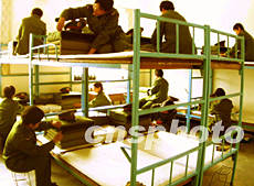 北京郊區(qū)的解放軍某新兵連女兵二十六日在緊張地整理內(nèi)務(wù),以做好元旦前突擊檢查的準(zhǔn)備工作。解放軍指揮機關(guān)每逢年節(jié)都要對下屬部隊進行檢查,以確保部隊秩序井然。作者:宋吉河