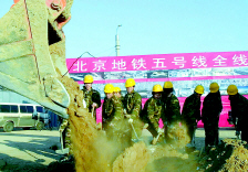 中新網(wǎng)12月29日電 沒有典禮,沒有致辭,沒有剪彩,昨天上午地鐵5號線工程樸素開工。一大早,市委書記、市長劉淇,市委副書記、常務(wù)副市長孟學(xué)農(nóng)等市領(lǐng)導(dǎo)來到地鐵5號線張自忠路施工現(xiàn)場,察看和聽取地鐵5號線籌備建設(shè)情況,并親切慰問工程建設(shè)者。