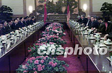 中新社北京十二月二十九日電(記者 朱大強)中國國務院總理朱镕基今天在人民大會堂與來訪的德國總理施羅德舉行會談,雙方在親切友好的氣氛中就雙邊關系和國際形勢交換了意見。朱镕基強調,近年來中德關系在各個領域都取得顯著發(fā)展,無論在廣度和深度上都處于歷史最好水平。