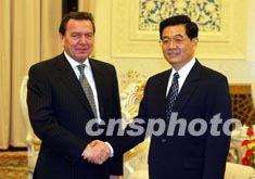 中新社北京十二月三十日電 (記者 朱大強(qiáng))中國國家副主席胡錦濤今天在人民大會(huì)堂會(huì)見了德國總理施羅德。