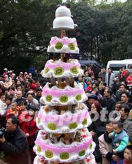 圖為當地一食品企業(yè)特意制作的巨型賀歲蛋糕。