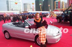 新年伊始,粵東汕頭都市汽車展開幕。風(fēng)姿綽約的汽車模特站在一款銀灰色的敞蓬跑車旁,為車展增添艷麗色彩。作者:王惠存