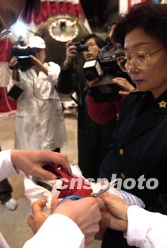 圖:“神舟”四號飛船返回艙在京開艙