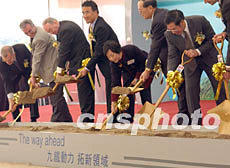 造價(jià)約港幣100億的九廣鐵路落馬洲支線動(dòng)土儀式一月九日在香港舉行。圖為主禮嘉賓主持動(dòng)土儀式。錢(qián)興強(qiáng) 攝