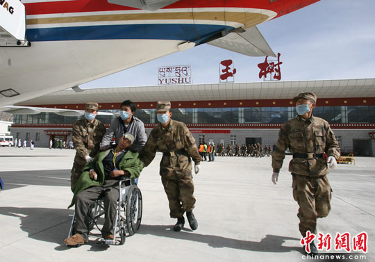 玉樹地震災(zāi)區(qū)14名藏族重傷員轉(zhuǎn)移至西寧