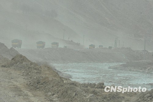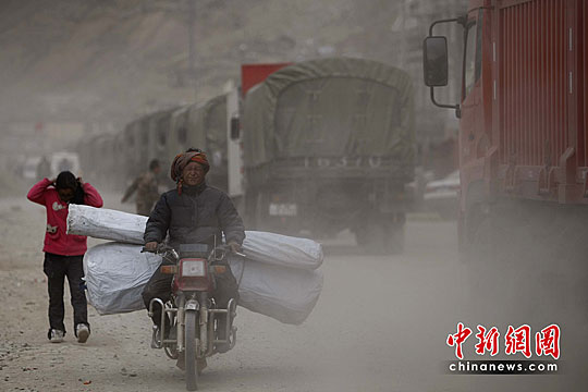 圖:軍民車隊穿越風(fēng)沙馳援玉樹災(zāi)區(qū)