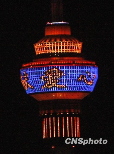 北京中央電視塔點(diǎn)亮愛心 哀悼玉樹地震遇難者