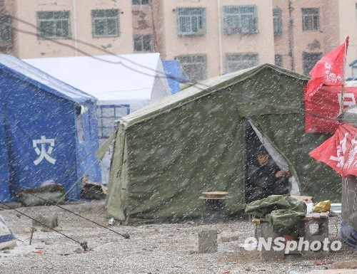 圖:青海玉樹地震災(zāi)區(qū)突降冰雹