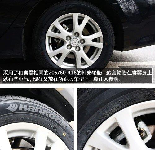 睿翼轎跑車的尾部也與普通版不同,順滑圓潤(rùn)的C柱設(shè)計(jì)比普通版車型看上去更加動(dòng)感,不過(guò)這樣也會(huì)損失一些后排乘客的頭部空間,后備箱采用了掀背式設(shè)計(jì),連同后車窗一起開啟,開口很大,讓消費(fèi)者可以更加從容的取放大件物品,而后備箱開啟按鈕的設(shè)計(jì)則與睿翼沒(méi)有區(qū)別。最大的遺憾就是我們?cè)谶@款車型上看到的205/60 R16的韓泰輪胎,在睿翼身上就顯得有些小,搭配到睿翼轎跑上還沒(méi)有任何改進(jìn)就有點(diǎn)說(shuō)不過(guò)去了,這樣節(jié)約成本的方式實(shí)在讓人不解。