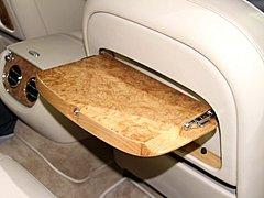 Mulsanne的奢華內(nèi)裝從皮革挑選到木紋搭配,創(chuàng)造個(gè)人風(fēng)格的極大化,除了親近人文的工藝點(diǎn)綴外,先進(jìn)科技的搭載,也是增添車(chē)室高貴不可或缺的運(yùn)用。 整塊實(shí)木運(yùn)用的餐桌、皮革包覆頂篷、窗框與C柱內(nèi)側(cè),即便是置于門(mén)上的菸灰缸,也以?huà)伖馓幚淼牟讳P鋼打造,握于手中的質(zhì)感與質(zhì)量,令人印象深刻。