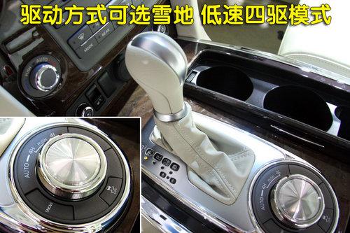 也許看到這里你仍然覺得這確實(shí)非常像一款豪華轎車,但是這個(gè)金屬材質(zhì)的旋鈕還是清晰的告訴你它真的是一款SUV車型。似乎在你沒有仔細(xì)閱讀使用前,你會覺得這個(gè)旋鈕似曾相識,但是它的作用卻是驅(qū)動轉(zhuǎn)換的操作系統(tǒng)?梢运矔r(shí)切換高速四驅(qū)、低速四驅(qū)及雪地三種模式,如果你覺得這樣很繁瑣,也可以將其調(diào)節(jié)到AUTO自動模式下,它也會根據(jù)實(shí)時(shí)路況做出聰明的反應(yīng)。