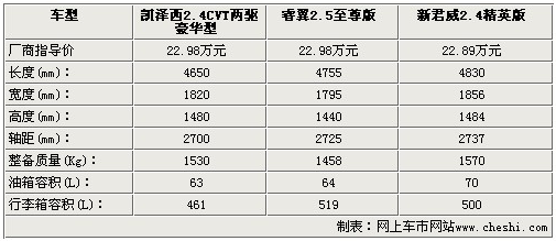 尺寸方面,新君威在長(zhǎng)寬高軸距四方面表現(xiàn)的都很出色,車長(zhǎng)方面新君威勝出凱澤西將近200mm,其他方面數(shù)據(jù)差異并不大,三款車基本打成平手。整車重量新君威也是最重,其次是原裝進(jìn)口的凱澤西,睿翼重量最輕,但是行李箱容積方面睿翼卻取得了勝利,其次是新君威,由此可見(jiàn),國(guó)產(chǎn)車型相比進(jìn)口車型在空間方面還是有一定優(yōu)勢(shì)的。