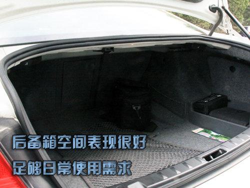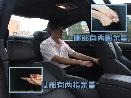 測(cè)試者座椅調(diào)整合適以后,正常坐姿時(shí)頭部有一個(gè)拳位余量,腿部活動(dòng)自由,沒(méi)有特別拘束的感覺(jué);后排空間表現(xiàn)良可,測(cè)試者正常坐姿下,腿部空間表現(xiàn)很好,有兩個(gè)拳位余量,頭部表現(xiàn)一般,有兩指空間,測(cè)試者稍有壓迫感。(測(cè)試者身高178CM)