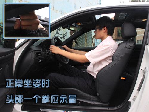 M3基于3系轎跑版打造,車(chē)身尺寸方面在原有的基礎(chǔ)上做出了更加符合跑車(chē)個(gè)性的處理。車(chē)三圍是4615mm*1804mm*1424mm,軸距為2761mm,整個(gè)尺寸都要比普通版進(jìn)口3系大一號(hào),起初因?yàn)閮砷T(mén)設(shè)計(jì)產(chǎn)生的對(duì)空間的擔(dān)心有所動(dòng)搖,測(cè)試者178CM。