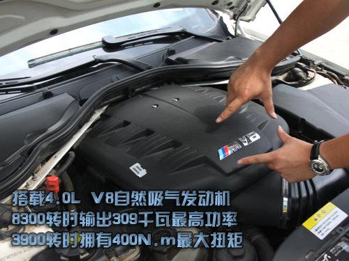 看完了外觀和內飾,M3透露出來的“偽”氣質似乎比較隱蔽,影影綽綽,F(xiàn)在咱們看看動力的部分。M3搭載4.0L V8自然吸氣發(fā)動機,應用Valvetronic (電子氣門技術)、DME數(shù)字式電子伺控系統(tǒng)、雙凸輪軸可變氣門正時控制系統(tǒng) (Bi-VANOS)等電子控制技術,8300轉時輸出309千瓦最高功率,3900轉時擁有400N.m最大扭矩。爆裂的孤狼性格此刻終于暴露了。