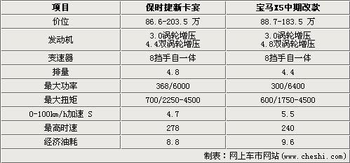 在動力部分卡宴包含V6和V8版本以及混合動力車型,寶馬新X5目前提供直列6缸和V型8缸車型。兩款車型的V6車型都帶有渦輪增壓技術(shù)其中寶馬直列6缸引擎為單渦輪雙渦管增壓器,技術(shù)上更具優(yōu)勢。