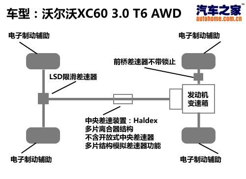XC60是一臺偏重城市駕駛的車輛,不過作為一臺SUV,它也具備一定的野外行駛能力,該車配備了瀚德公司生產的第三代Haldex四驅系統(tǒng),具有多片離合器的中央分動裝置且在后橋上具有有LSD限滑差速器,配合電子輔助系統(tǒng)進行工作,對于難度不是太大的越野項目通過能力還是不錯的,電子系統(tǒng)制動的效果也很明顯。