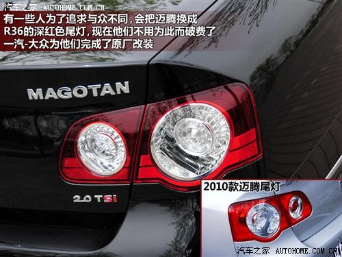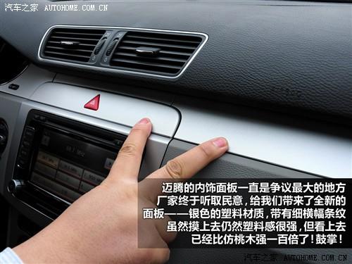 2011款邁騰的外觀和內(nèi)飾進(jìn)行了的一些修改,主要是換裝新的和R36一樣的深紅色尾燈和新的內(nèi)飾面板,另外在高配車型上增加了后排乘客調(diào)節(jié)前排副駕駛座椅的功能,其他的變化都是細(xì)節(jié)上的,對整車實用性影響不大,不過也順便把座椅位置記憶減配了。