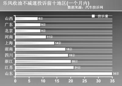 值得一提的是,此次投訴覆蓋了全國(guó)21個(gè)省市自治區(qū),占了國(guó)內(nèi)絕大部分地區(qū),因此,本次樂(lè)風(fēng)發(fā)動(dòng)機(jī)收油不降速投訴,除投訴量增長(zhǎng)迅猛外,涉及的面廣也是其中的一大特色。