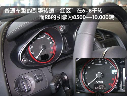 通過駕駛室內(nèi)的轉(zhuǎn)速表可以看出,這臺(tái)發(fā)動(dòng)機(jī)的轉(zhuǎn)速范圍可以達(dá)到最高9000轉(zhuǎn),而“紅色區(qū)域”從8000轉(zhuǎn)才剛剛開始。也就是說有它別于一般的車輛,為了得到最佳的功率和扭矩輸出,讓R8的發(fā)動(dòng)機(jī)保持在5-8千轉(zhuǎn)進(jìn)行工作是相對(duì)合理的。這時(shí),每一個(gè)聽到R8呼嘯的人也許都會(huì)說:“喔,我想那輛車一定非常棒!”奧迪R8提供了三幅真皮包裹的運(yùn)動(dòng)型方向盤,在10點(diǎn)和2點(diǎn)位置都有凸起從而方便駕駛員的抓握。多功能方向盤后方的換檔撥片可以在手動(dòng)模式下實(shí)現(xiàn)類似F1賽車式的換檔方式。