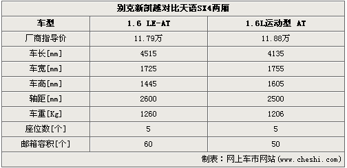 別克新凱越的定位很明確,針對(duì)緊湊級(jí)家庭用車,其三圍是:4515mm*1725mm*1445mm;與此新凱越形成鮮明對(duì)比,鈴木sx4兩廂走的可是正統(tǒng)的Cross風(fēng)格,車身尺寸為:4135mm*1755mm*1605mm。之所以選擇SX4兩廂版作為對(duì)比的對(duì)象,是因?yàn)楦目钴囆偷匿N量比起三廂版好很多,可以與新凱越正面交鋒。從數(shù)據(jù)上來(lái)看三廂的新凱越在車長(zhǎng)和軸距方面優(yōu)勢(shì)明顯,而SX4兩廂則是以車身高度和寬度見(jiàn)長(zhǎng)。如此看見(jiàn)后排的空間感受還是新凱越更舒服一些,較高的駕駛員視角是SX4的亮點(diǎn)之一。