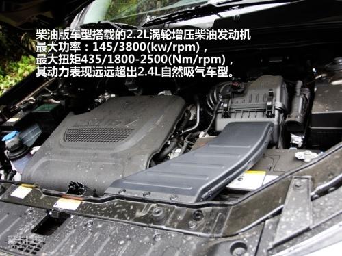 柴油版索蘭托裝備了一臺2.2L渦輪增壓柴油發(fā)動機,最大功率145/3800(kw/rpm),最大扭矩435/1800-2500(Nm/rpm)。相比之前的2.4L汽油發(fā)動機(最大功率為128/6000(kw/rpm),最大扭矩為225/3750(Nm/rpm)),可以算是一個較大的提升,也完全符合柴油發(fā)動機的特性。但魚和熊掌不能兼得的道理依舊不能違背,這臺發(fā)動機在怠速時噪音尚可接受,而起步瞬間的噪音的確有些擾人。