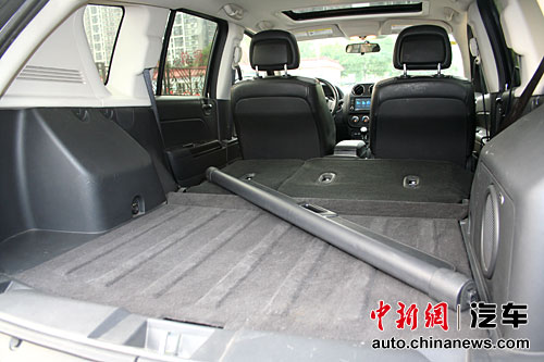 前排座椅乘坐的舒適性相當(dāng)不錯(cuò)。局限于車身尺寸,后排空間略顯稍小,想悠閑的翹起二郎腿是不可能了,但一般的乘坐是夠了。后排座椅可以等比例放倒,放平后,車廂后部擁有了1277L的超大行李箱空間,對于盛放普通行李而言已經(jīng)綽綽有余。不過遺憾的是,在小儲物空間處理方面,Jeep指南者缺乏了一些人性化的設(shè)計(jì)。
