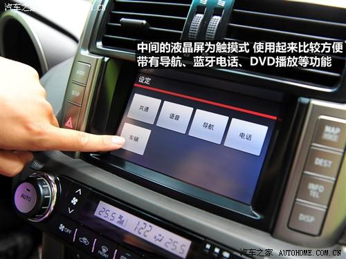 中間的液晶屏為觸摸式設(shè)計(jì),相比那些旋鈕和搖桿操作更加直觀簡(jiǎn)單,而其功能也很豐富,導(dǎo)航、藍(lán)牙電話,DVD播放等功能一應(yīng)俱全。液晶屏下方的是空調(diào)控制區(qū),普拉多采用雙區(qū)自動(dòng)空調(diào),主副駕駛可以分別調(diào)節(jié)自己需要的溫度。