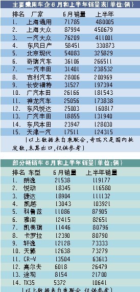 乘聯(lián)會(huì)最新統(tǒng)計(jì)顯示,上半年廣義乘用車國(guó)內(nèi)銷售累計(jì)達(dá)631萬(wàn)輛,廣義乘用車批發(fā)銷量累計(jì)達(dá)672萬(wàn)輛。上海通用以半年銷售48萬(wàn)輛超越2008年全年的成績(jī),奪得了半程冠軍,但在6月,上海通用7.18萬(wàn)輛的銷量低于上海大眾的8.8萬(wàn)輛。