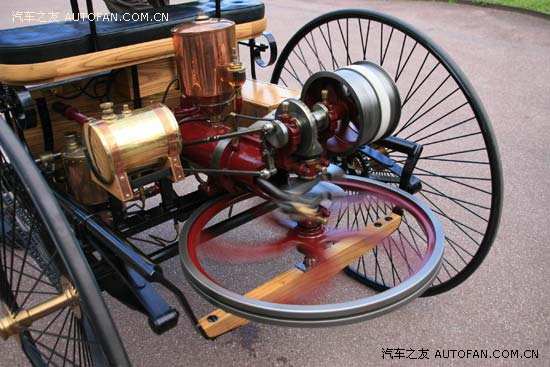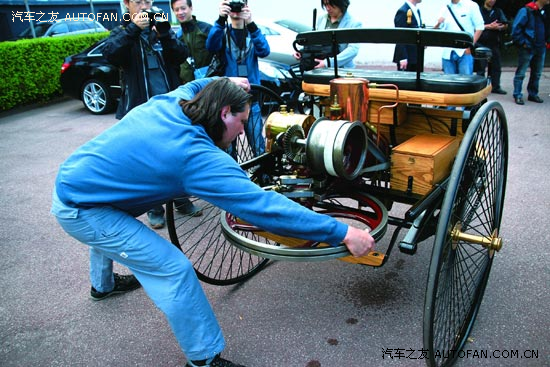 試乘完畢,漏的油似乎比用掉的多。這輛復(fù)制車還算精細,不知道120年前的奔馳1號是不是也這樣遺灑?盡管如此,“不用馬拉的車”也值得我們肅然起敬了