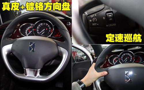 雪鐵龍DS3采用了三幅式方向盤,配以銀色的裝飾面板,整體感覺運(yùn)動(dòng)時(shí)尚。這款方向盤的包覆材料為真皮材質(zhì),質(zhì)地較軟手握感覺比較舒適。