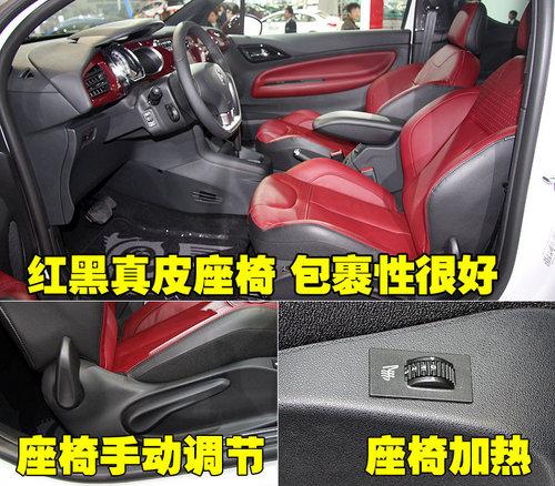 雪鐵龍DS3整車座椅均采用紅黑真皮材料,駕駛席座椅前后、靠背角度、座椅高度為手動(dòng)調(diào)節(jié)。各拉手四周做工較細(xì)致,沒有感覺到松垮的感覺。