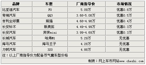 以上的8款車都是我們?nèi)粘I钪泻艹R姷男≤,價(jià)格便宜是大家對它們的第一印象,但是它們同樣可以為我們提供更安全的駕駛環(huán)境。一些價(jià)格更高的車型也未必會(huì)提供雙安全氣囊,而在5萬元這個(gè)價(jià)格區(qū)間,它們的“安全意識”,明顯高于那些沒有這項(xiàng)配置的車。