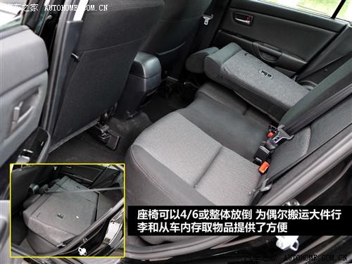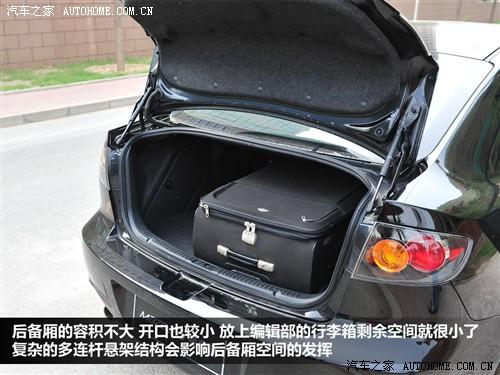 馬自達(dá)3后備箱容積不大甚至讓我感覺有些小,而且離地較高,女士在向后備箱裝較重物品時(shí)會比較費(fèi)勁;不過后排座椅可以以4:6的比例放倒,如果偶爾搬運(yùn)大件行李,這樣的設(shè)計(jì)會有所幫助,但是我認(rèn)為能力還是有限。