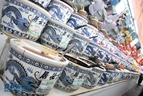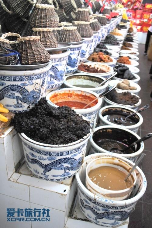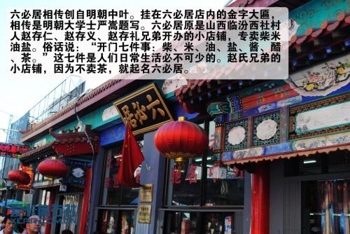 漫步至大柵欄,無(wú)意間看到六必居!搬u園六必居為最,金字招牌歷兩朝!绷鼐幼灾频母鞣N風(fēng)味醬菜大名是自不必說(shuō)了,其中又以八寶菜、醬黃瓜、甜黃醬、醬甜瓜等最為有名。當(dāng)年北京有“五大醬園”,即:六必居、天源、天義成、寶瑞、天章涌,各有特色,而今只有六必居、天源兩家了。 想要嘗嘗當(dāng)年五大醬園的味道早已不能,只有在僅存的六必居和天源去找尋當(dāng)年醬園的留香。