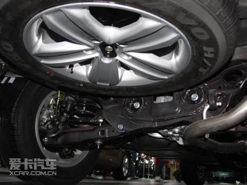 帝豪EX7的前懸掛為麥弗遜式,后懸架為雙叉桿獨(dú)立式,這樣的設(shè)計與RAV4相同,從圖中我們能看出在一些微小細(xì)節(jié)上相似度也十分高。不過備胎被隱藏在車身下方,這一點則與RAV4不相同。