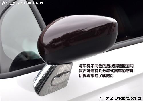 帶有鍍鉻裝飾的后視鏡造型圓潤(rùn),有幾分與老式賽車(chē)的感覺(jué),并集成了轉(zhuǎn)向燈,后視鏡面積不小,相信視野應(yīng)該也不會(huì)差。